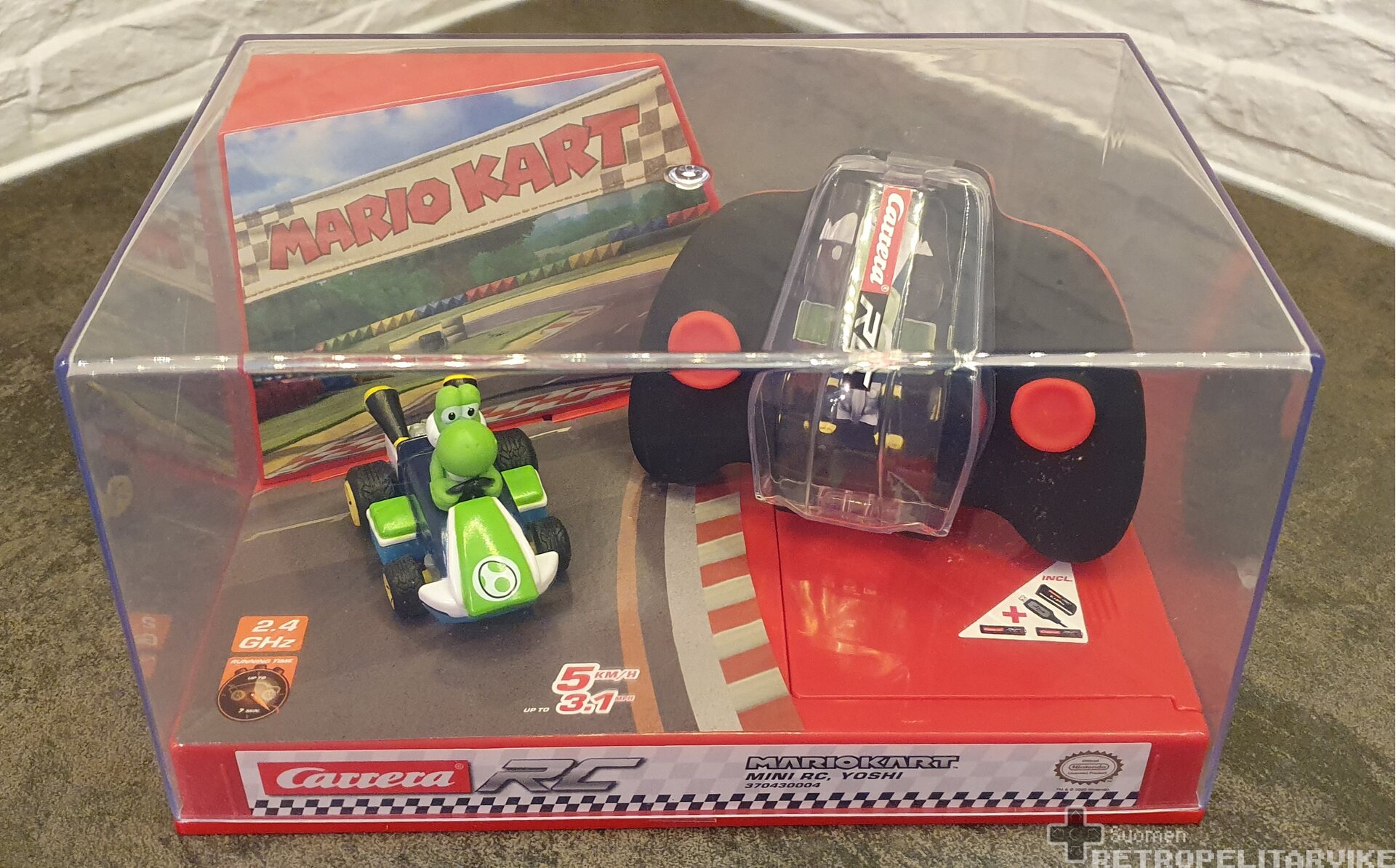 Product descriptionCarrera Nintendo RC Mini Yoshi radio-ohjattava auto. Uusi ja avaamaton.